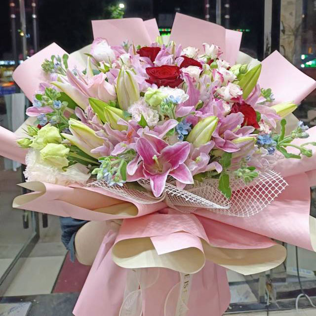 【情意浓】玫瑰百合花束