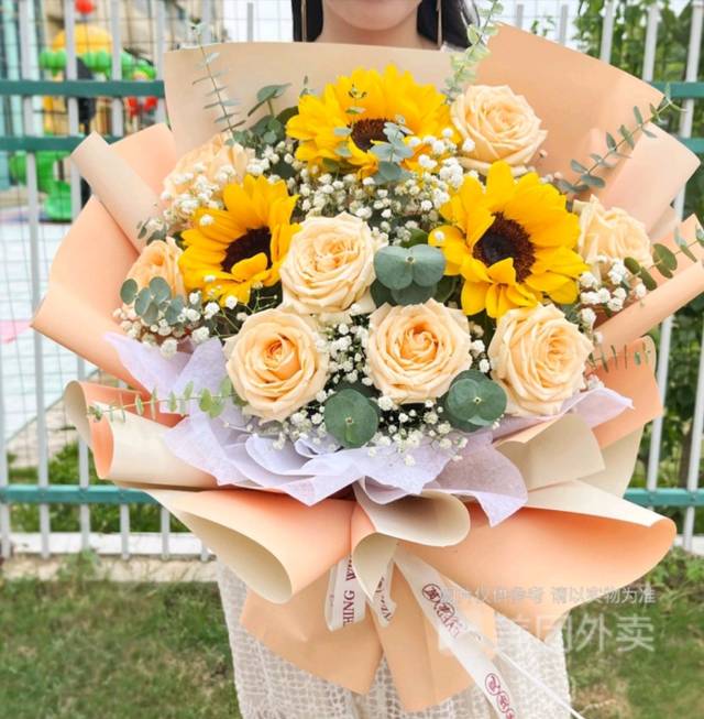 【青葱岁月】3朵向日葵+8朵玫瑰